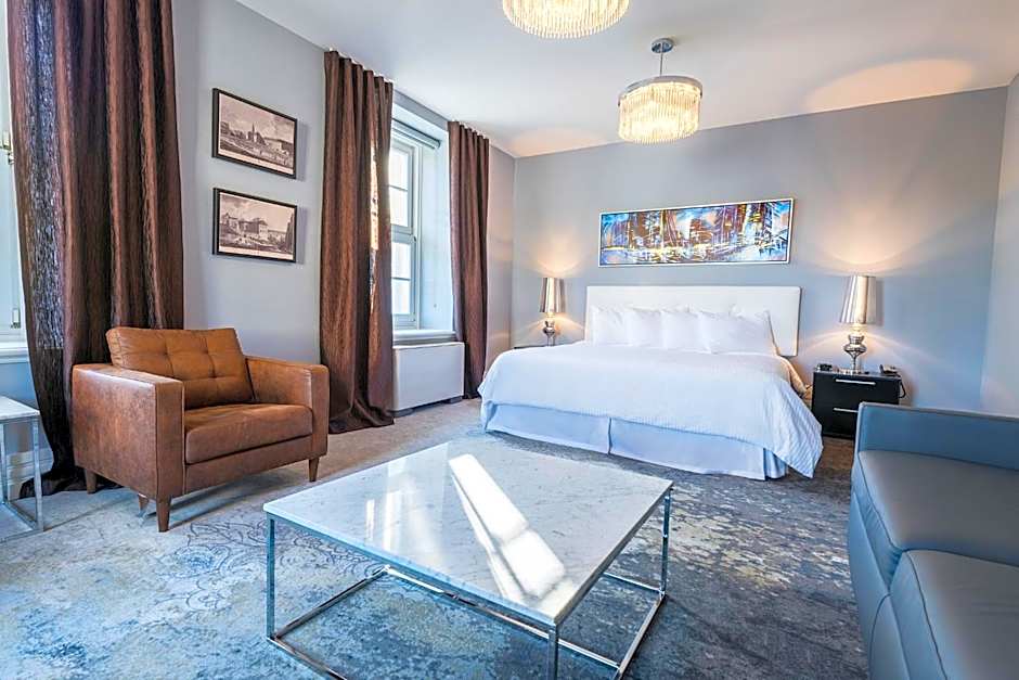 This panoramic suite has a seating area and air conditioning. It also has a view of Place d'Armes.